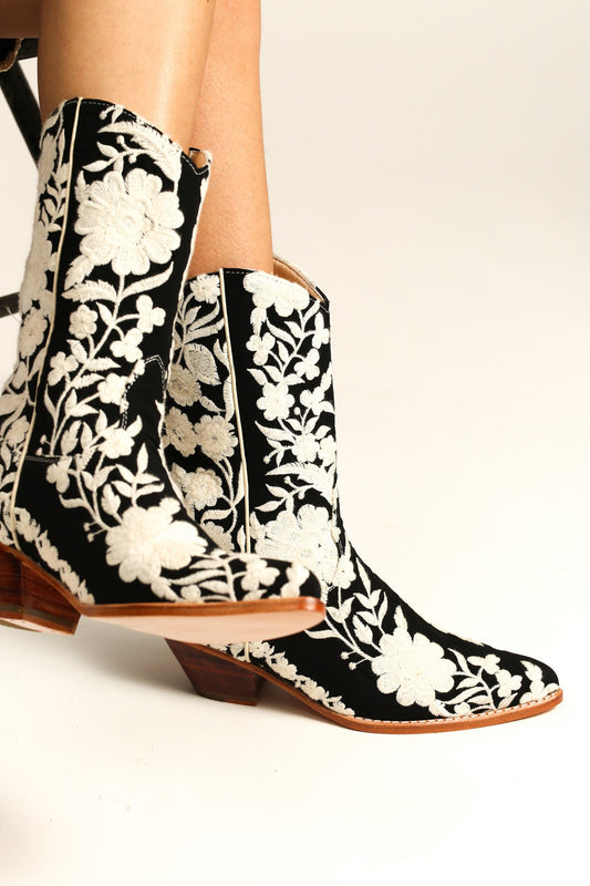 BLACK CREAM FLOWER EMBROIDERED WESTERN BOOTS SHIRON