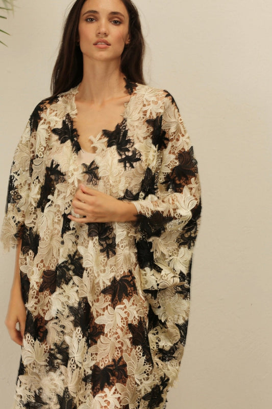 KOUMALY CROCHET KIMONO JACKET BLACK MULTI