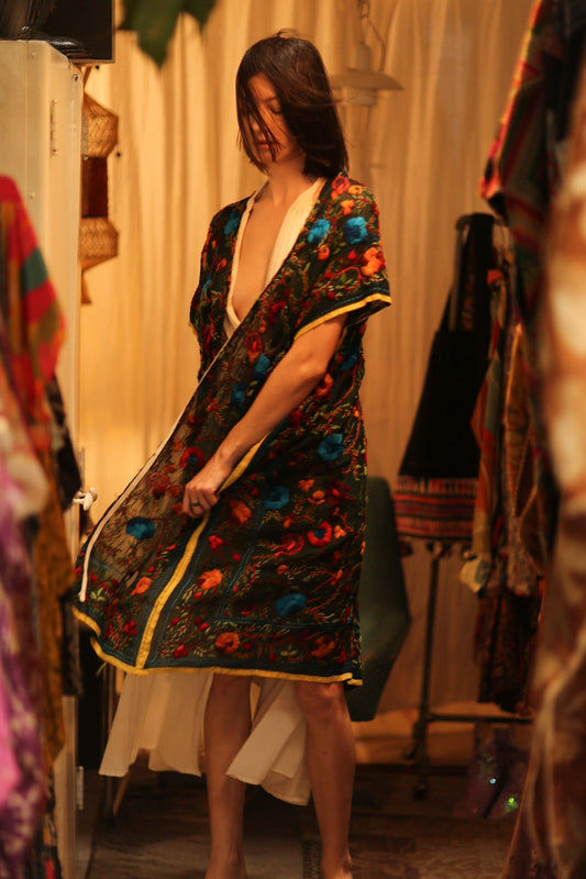 CARMEN SEQUINED EMBROIDERED SHORT KIMONO