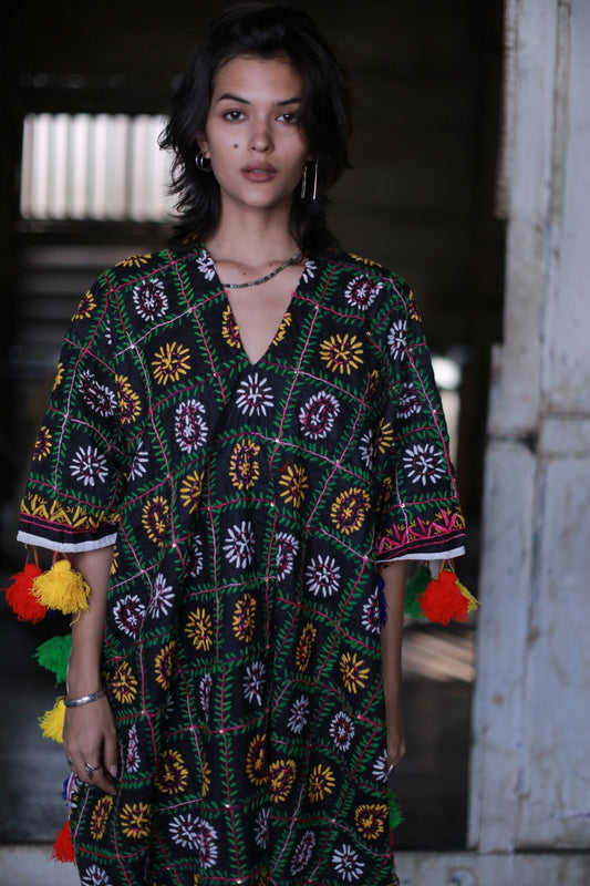 EMBROIDERED POM POM KAFTAN DRESS SIMPY