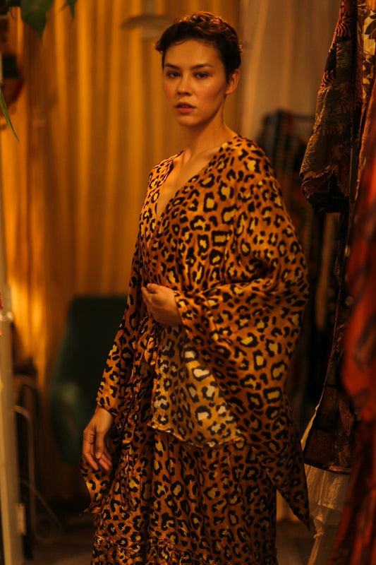 HAND BLOCK SILK KIMONO PINA TYLET PRINT