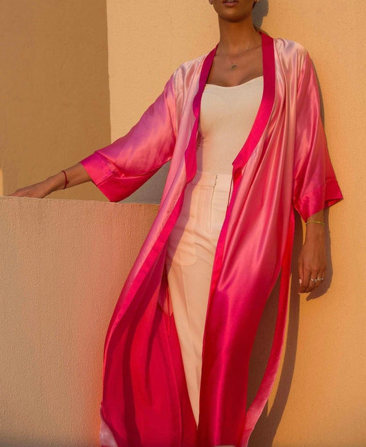 PINK GOLDEN SILK FLOWER KIMONO