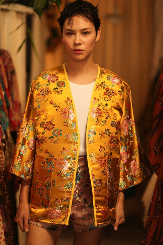SHORT SILK EMBROIDERED KIMONO OSANU