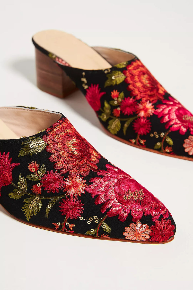 HEELED MULES EMBROIDERED X ANTHROPOLOGIE