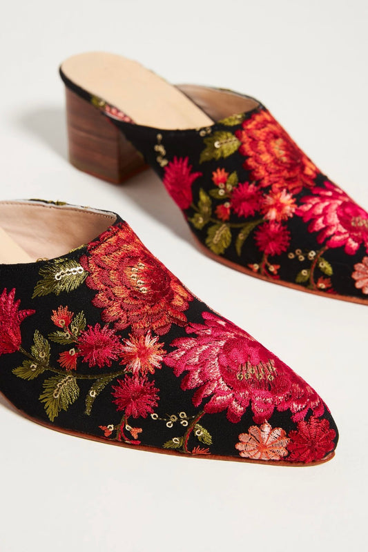 EMBROIDERED FLOWER SILK MULES MILTONA