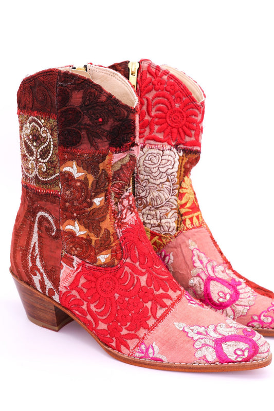 EMBROIDERED PATCHWORK ANKLE BOOTS GINALYN (RED)