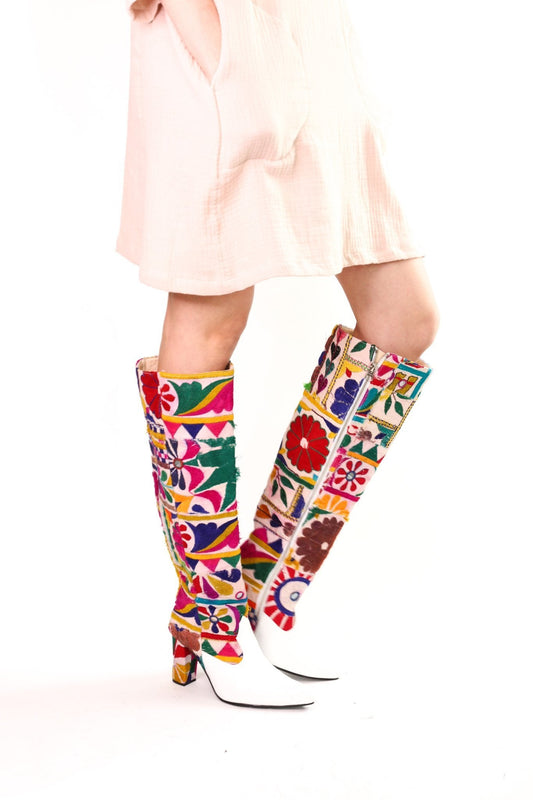EMBROIDERED PATCHWORK TALL BOOTS SENREVE