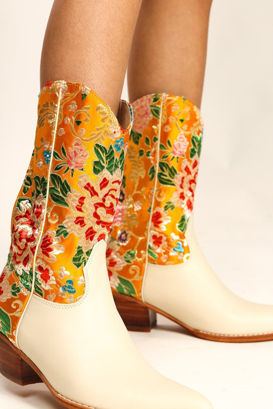 IVORY PINK FLOWER WESTERN BOOTS OHLOLITA