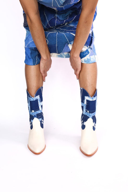 EMBROIDERED PATCHWORK WESTERN BOOTS ANDROMEDA