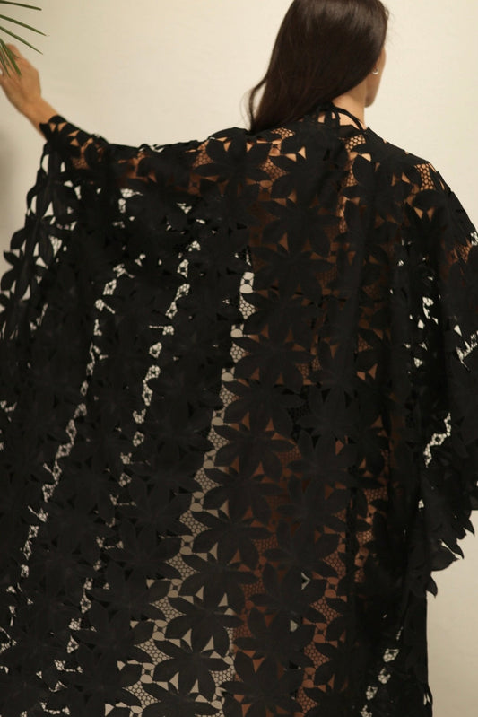 BLACK SEQUIN EMBROIDERED FLOWER KIMONO