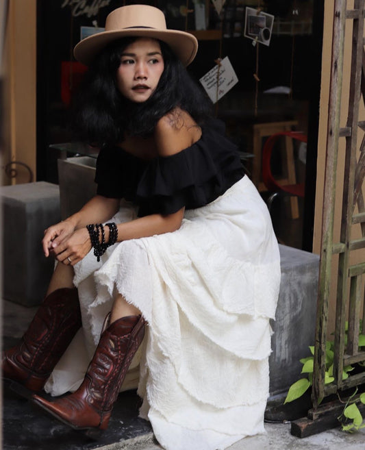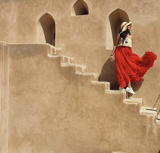 PEACH SILK EMBROIDERED SKIRT MAILAINA