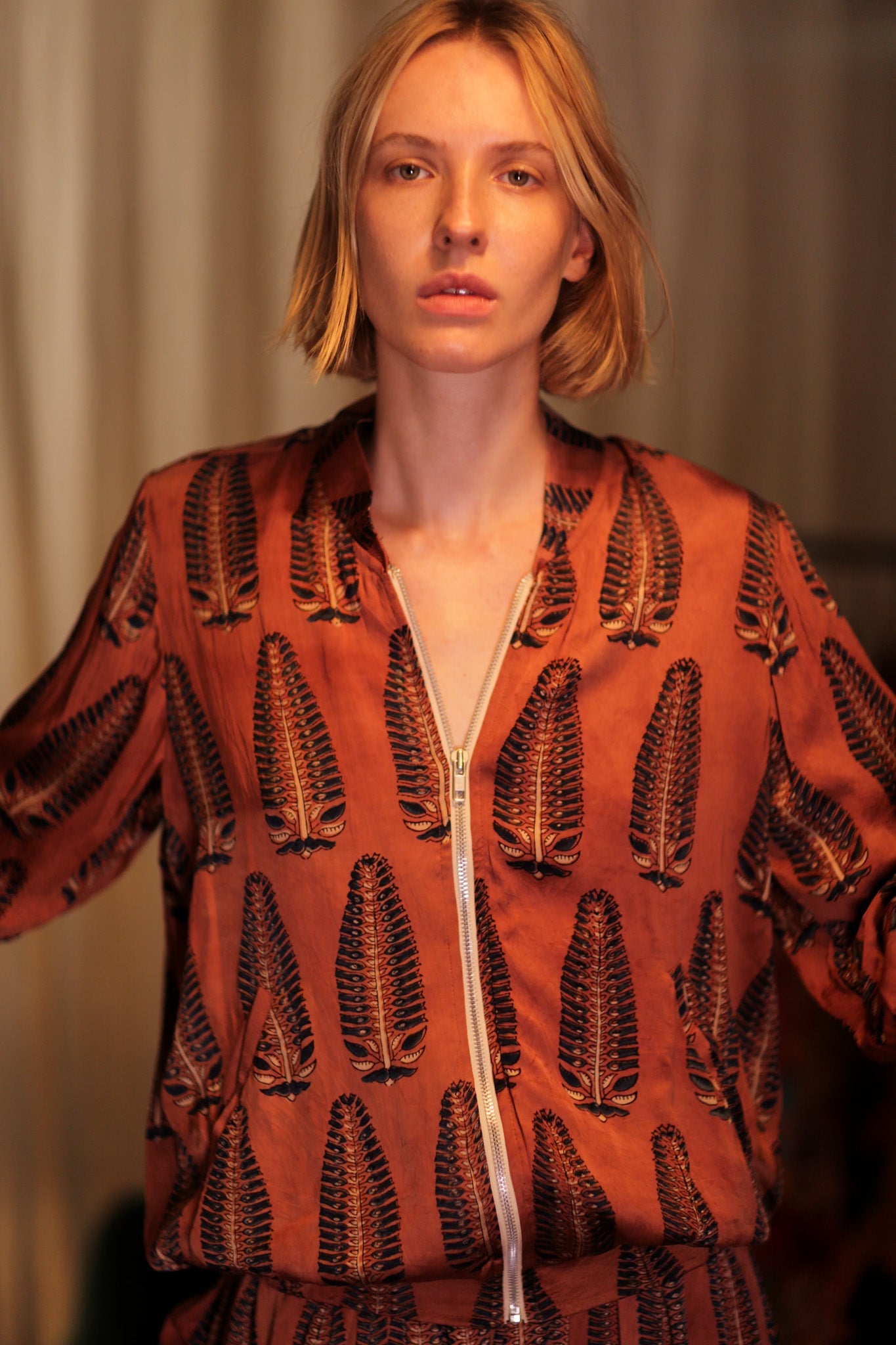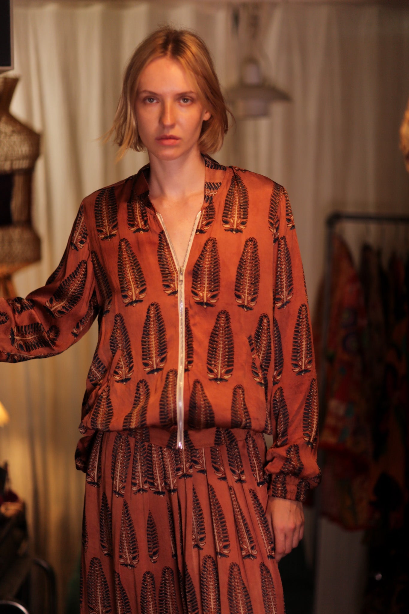 SILK BOMBER JACKET ANCHA BROWN LEAFES